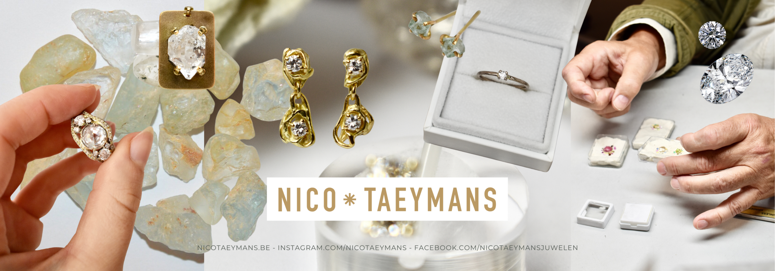 Nico Taeymans is een grote naam onder de juwelenontwerpers. Unieke juwelen en sieraden worden in samenspraak met de klant ontworpen en op maat gemaakt. Nico ontwerpt en vervaardigt prachtige zilveren en gouden juwelen. Het werken met organische materialen als steen, glas of hout is zijn passie.