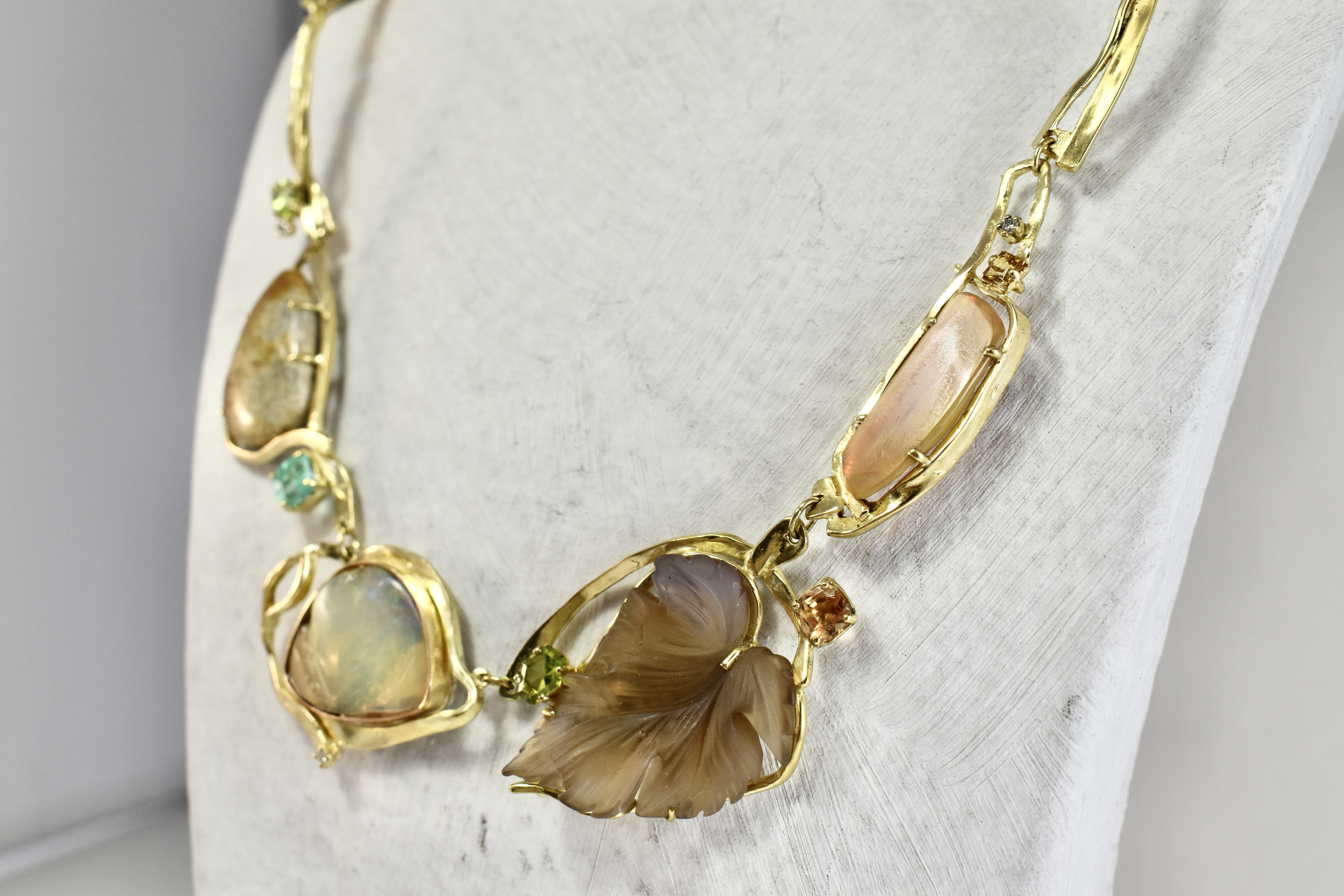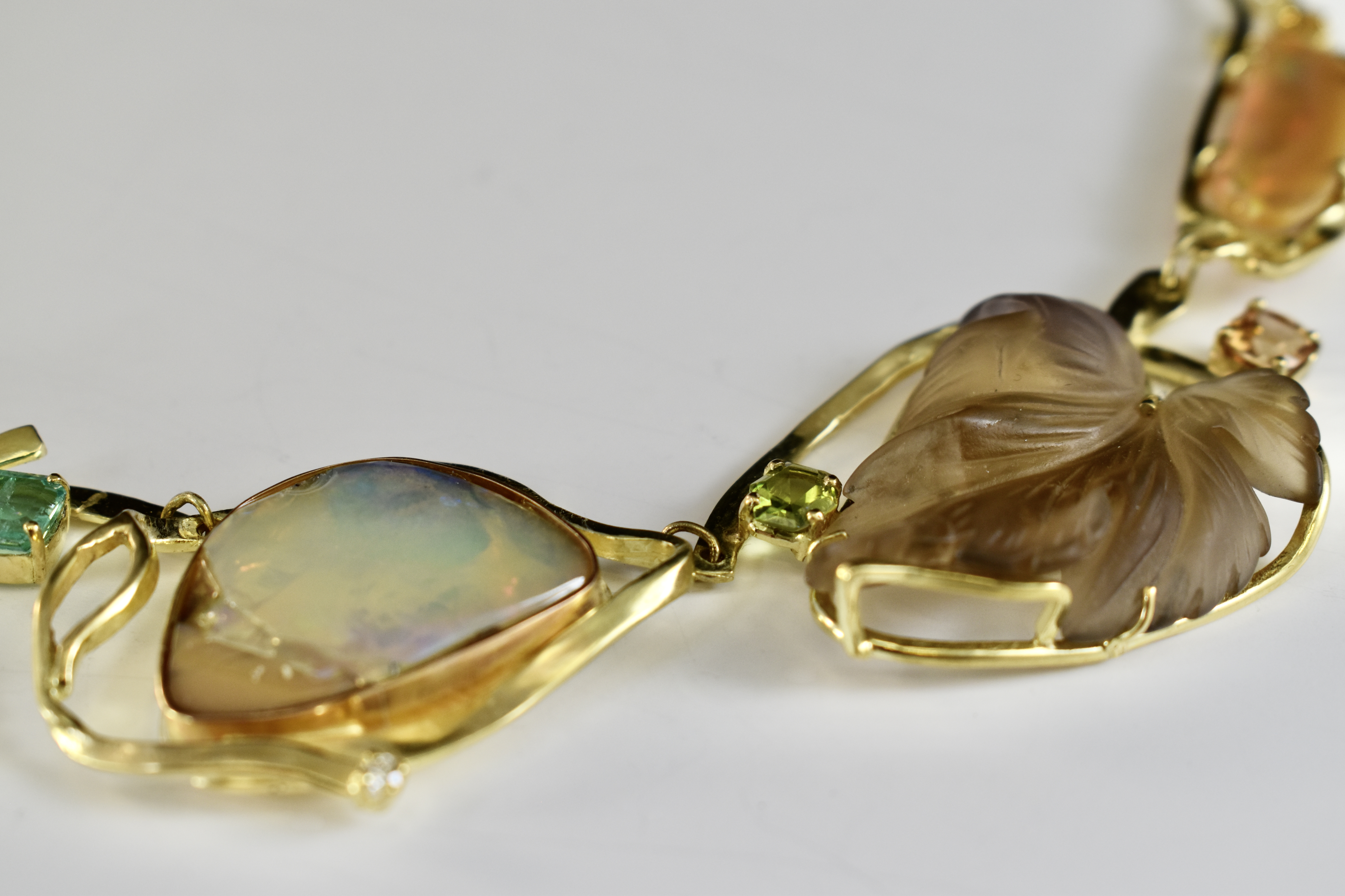 Gouden halsketting met verschillende edelstenen